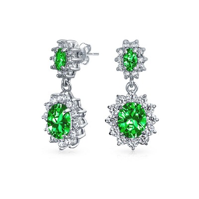 Bling Jewelry Crown Halo Oval Cubic Zirconia Green Green CZ Fashion Small Dangle Drop Earrings Rhodium Plated