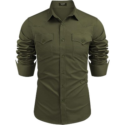 COOFANDY Men's Western Cowboy Shirts Long Sleeve Cotton Casual Button Down Work Shirt with Pockets
