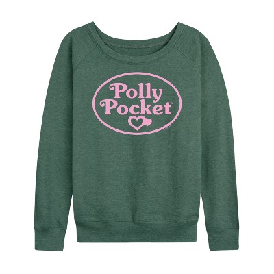 Women's - Polly Pocket - Logo And Doll Lightweight French Terry Wide Neck Long Sleeve Graphic Shirt
