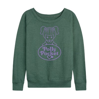 Women's - Polly Pocket - I Love Polly Pocket Lightweight French Terry Wide Neck Long Sleeve Graphic Shirt