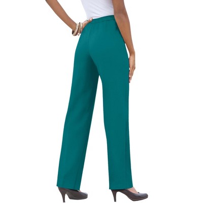 Woman Within Petite Straight-Leg Stretch Ponte-Knit Pull-On Pants