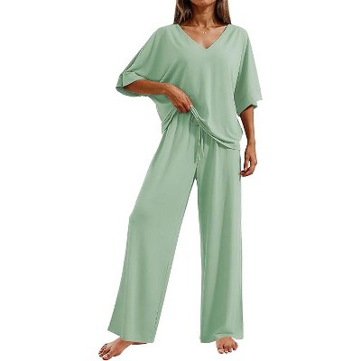 Ekouaer Womens Pajama Sets Viscose from bamboo Lounge Set Soft Pajamas for Women Set Short Sleeve and Long Pants Sleepwear