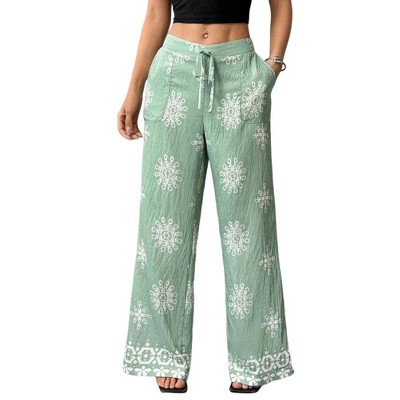 Coolmee Women's Wide Leg Palazzo Pants Casual Boho Floral Trousers Flowy Beach Vacation Clothes