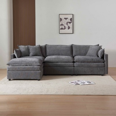 grey couch with silver studs