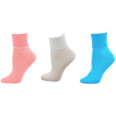 Wear Sierra Women's 100% Combed Cotton Ankle Turn Cuff 3 Pair Pack - Loose Fitting Socks