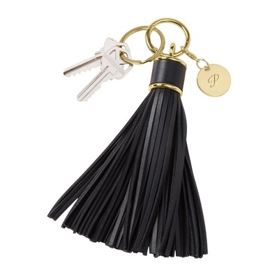 Personalization Mall Engraved Black Leather Tassel Keychain & Bag Tag