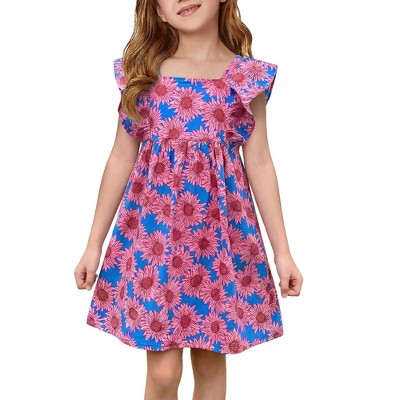 INSPIRE CHIC Girl's Flutter Sleeve Square Neck A-Line Floral Printed Knee-Length Dress