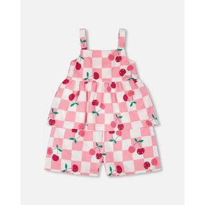 Deux par Deux Girl Organic Cotton Jersey Romper Pink Printed Cherries
