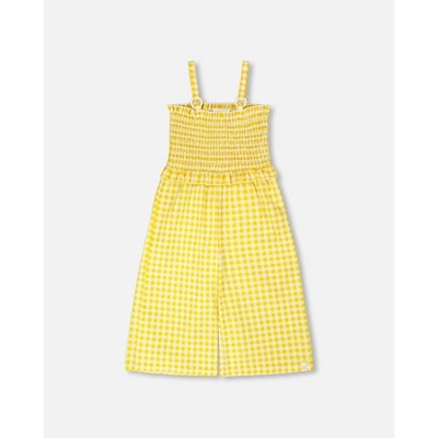 Deux par Deux Girl Capri Jumpsuit with Smocking Yellow Gingham