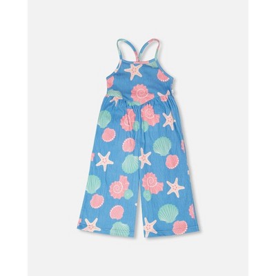 Deux par Deux Girl Crinkle Jersey Jumpsuit Blue Shell Print