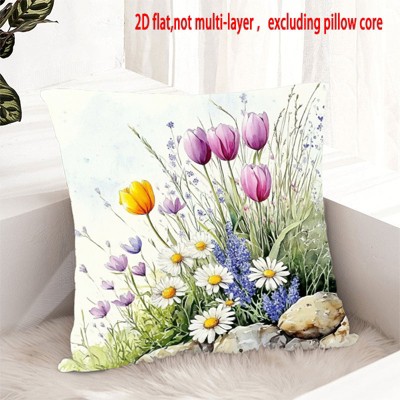 Lomsoe 1pc Vintage Floral Pillow Cover - Spring Decor Cushion Case - Living Room, Bedroom, Sofa Decor - 18x18Inch.