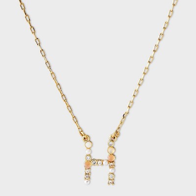 14k Gold Dipped Opal Pearl & Cubic Zirconia Letter Initial Necklace - A New Day™ Gold
