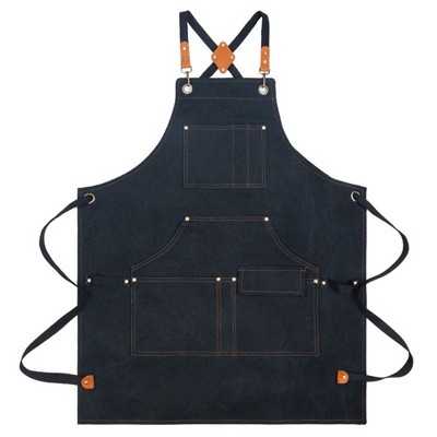Alilang Canvas Kitchen Apron with Adjustable Shoulder Straps Multi Pocket Work Apron for Cooking Cleaning