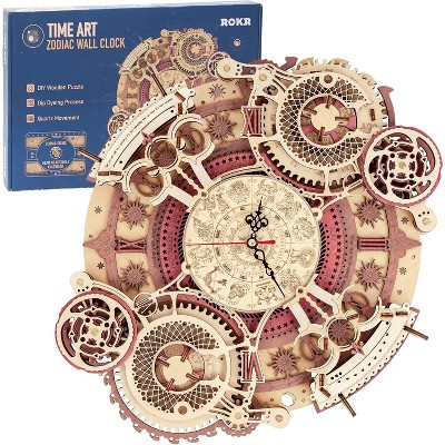 ROKR 3D Wooden Puzzles for Adults-Wooden Clock Puzzle Kit-Wood Model Kits to Build for Adults-Zodiac Wall Clock