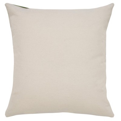 LR Home Ox Bay Hand-Woven Green/White Floral/Botanical All-Natural Cotton Pillow Cover