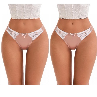 Allegra K Women's Smooth Elastic Lace Low Waist Solid Thongs 3 Packs