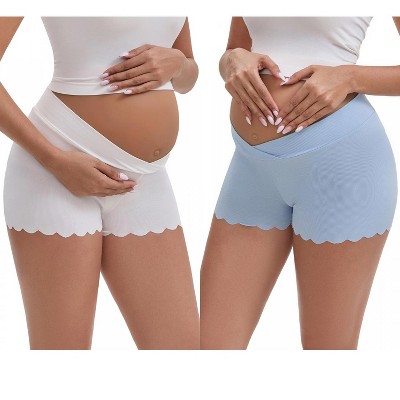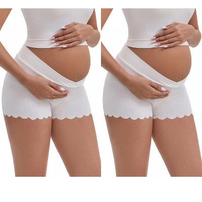 INSPIRE CHIC Women's Ice Silk Anti-Chafing Maternity Mid Rise Tummy Support Lightweight No Trace Panties 2 Packs