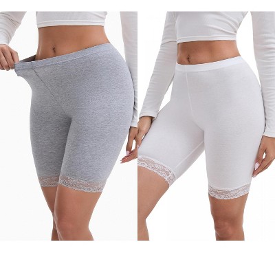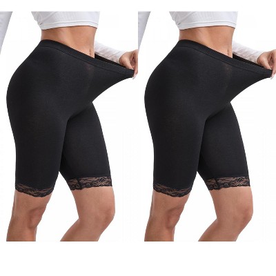 INSPIRE CHIC Women's Lace Trim Medium Length Control Panties Elastic Lightweight Comfortable Soft Solid Slimming Shorts 2 Packs