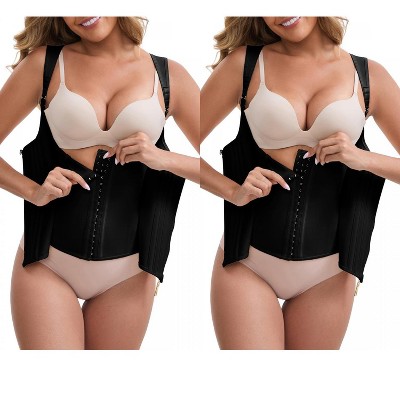 INSPIRE CHIC Women's Steel Latex Slimming Waist Corset Top with Front Zipper Adjustable Straps Push-Up Tummy Control Tank 2 Packs