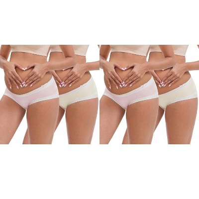 INSPIRE CHIC Women's Ice Silk Ribbed V-Shaped Low Rise Color Patchwork Pregnancy Maternity Briefs 4 Packs