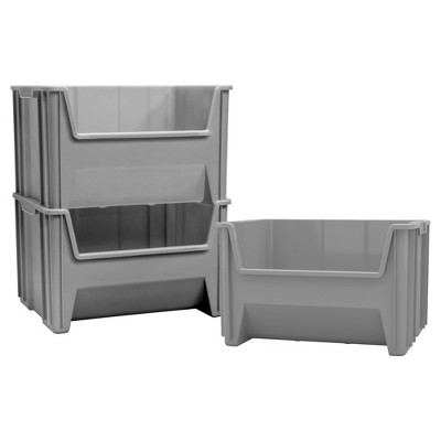 Akro-Mils Stak-N-Store Stackable Storage Bin, Open Front Organizer, Gray, 3 Pack