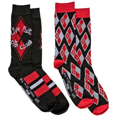 Mens The Suicide Squad Harley Quinn Lie Fast Die Clown 2-Pair Pack of Casual Crew Socks