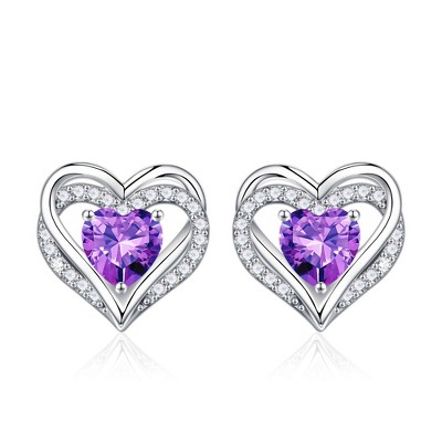 Turandoss S925 Sterling Silver Stud Earrings for Women, Month Birthstone Heart Cartilage Earring, Birthday Valentine's Day Gifts for Women Wife Mom