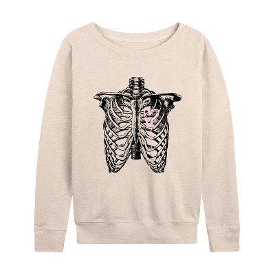 Women's - Instant Message - Ribcage Bleeding Heart Lightweight French Terry Wide Neck Long Sleeve Graphic Shirt