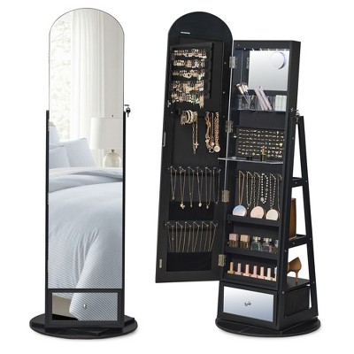 - large black circular mirror