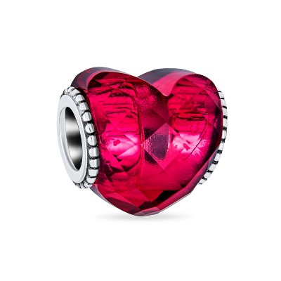 Bling Jewelry Valentine Love Rose Pink Heart Shape Faceted Murano Glass Spacer Charm Bead Sterling Silver Core Fits European Bracelet