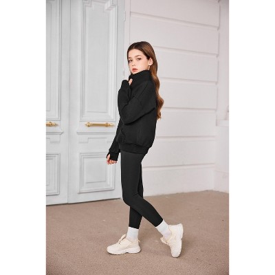 Arshiner Girls Half Zip Sweatshirt Fleece Quarter Zip Pullover Sweatshirts Fall Clothes for Teen Girls Thumb Hole Black 7-8 Years