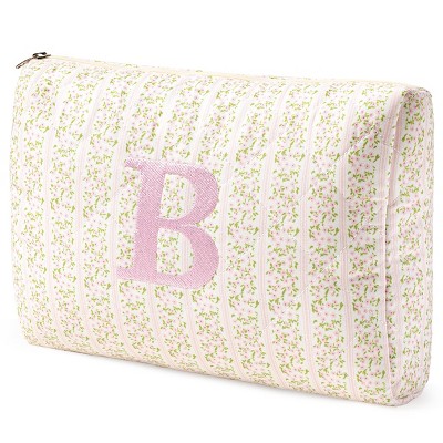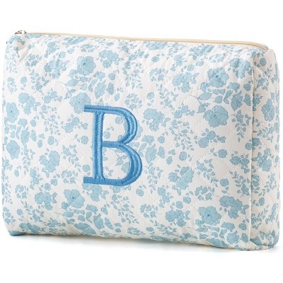 Narwey Initial Quilted Makeup Bag, Cotton Large Travel Makeup Bag, Cute Floral Coquette Make up Bag Cosmetic Bag Toiletry Bag for Women Girls B
