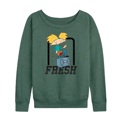 Women's - Hey Arnold! - Fresh Arnold Lightweight French Terry Wide Neck Long Sleeve Graphic Shirt