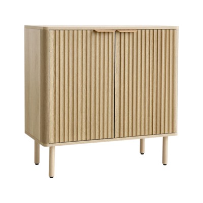 VEVOR Coffee Bar Cabinet, Mid Century Fluted Coffee Bar Table with 2-Tier Storage, Buffet Stand Cabinet with 2 Barn Door, 31.5 x 14.7 x 31.5 in, Oak