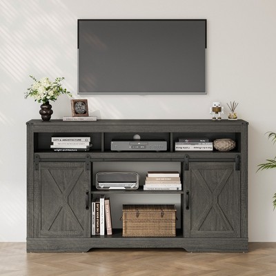 58" Farmhouse TV Stand and Entertainment Center for Televisions up to 65 Inchs,with Sliding Barn Doors and Storage Cabinets