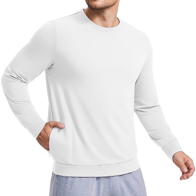 Pinspark Men's Long Sleeve Shirts Crew Neck T-Shirt Casual Pullover Tees Soft Stretch Basic Tee Shirt with Zipper Pocket