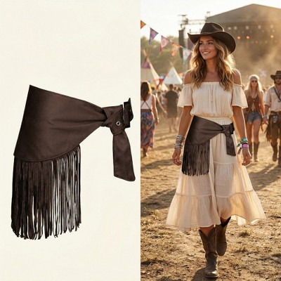 Alilang Women's Fringe Waist Belt Wrap Tie Adjustable Faux Suede Western Style Hip Scarf Accessory - Coffee