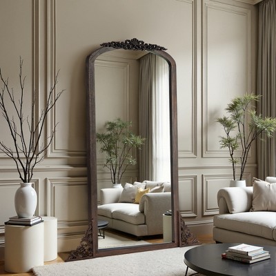 PexFix 28 in. W x 67 in. H Rustic Arched Solid Wood Framed DIY Carved Full Length Mirror in Charcoal