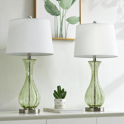 LumiSource Rockwell 23" Accent Lamps: Set of 2, Sage Crackle, Polished Nickel, White Linen Shade