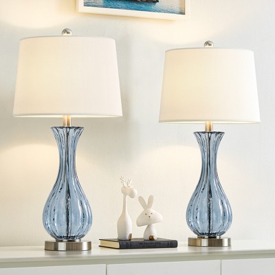 Possini Euro Design Pablo 27" Tall Modern Coastal Table Lamps Set of 2 Blue Art Glass White Shade Living Room Bedroom Bedside (Colors May Vary)