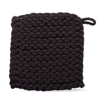 tagltd Black Crocheted Cotton Trivet Potholder – 8"x8", Heat-Resistant with Hanging Loop, Machine Washable, Protect Hands and Surfaces