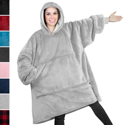 PAVILIA Wearable Blanket Sweatshirt Faux Shearling Lining, Soft Warm Reversible Hoodie, Giant Oversized Fleece Pullover With Pocket