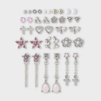 Mixed Floral and Cross Icon Earring Set 18ct - Wild Fable™ Silver