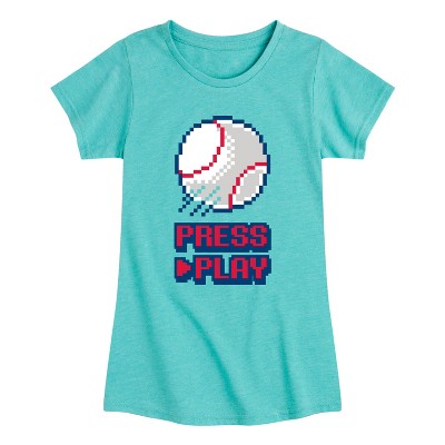 Girls' - Instant Message - Baseball Video Game Press Play Fitted Short Sleeve Graphic T-Shirt