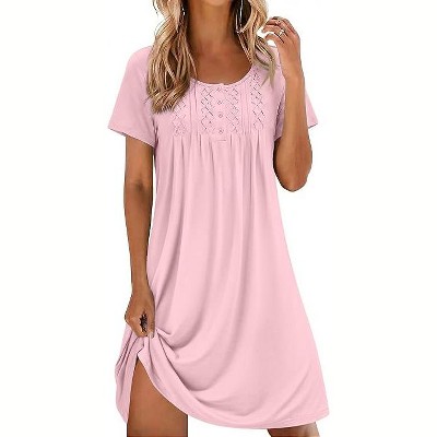 INSPIRE CHIC Women's Nightgowns Lace Trim Built-in Bra Short Sleeve Sleepwear Night Shirts Sleep Pajama Dress