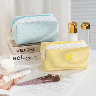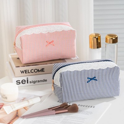 Narwey 2 Pcs Makeup Bag Set Cute Cosmetic Pouch for Women Seersucker Travel Toiletry Bag