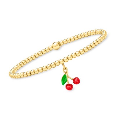 Pure Collection by Ross-Simons Italian 3mm 18kt Gold Over Sterling Bead Stretch Bracelet With Enamel Cherry Charm