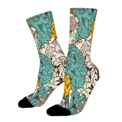 Dsane Bright Floral Women Printed Crew Socks Funny Funky Socks Soft Polyester Novelty Gifts for Artists Men