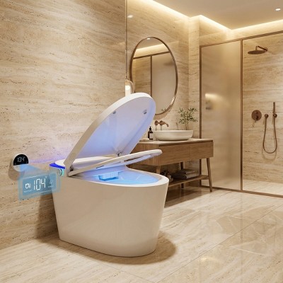 Dyonery Smart Bidet Toilet Combo, Foam Shield Anti-Splash, Auto Open/Close, Tankless One Piece Toilets with Foot Sensor, Warm Dry