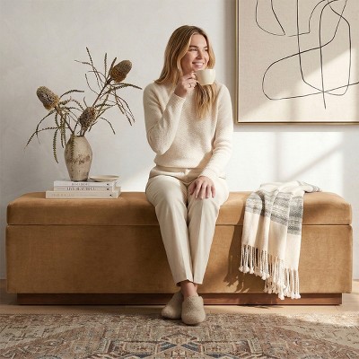 60" Modern Velvet Upholstered Storage Bench, Stylish Living Room Seating with Hidden Storage, End-of-Bed and Entryway Bench-Panipeachy